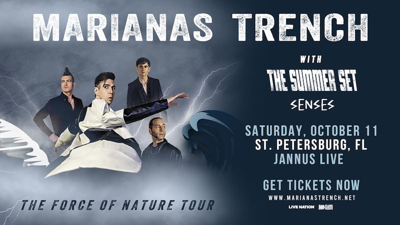 Marianas Trench has consistently raised the musical bar both in the studio and via their explosive live shows around the globe headlining tours in the USA, Canada, Europe, and Australia. The band has had Top 10 radio hits, multiple #1 videos, 2 Triple-Platinum records, 1 Platinum record, 1 Gold record, 6 Triple-Platinum digital singles, and multiple awards through the Junos, SOCAN, MMVAs, Canadian Radio Music Awards, and The Indies. They performed at the 2010 Vancouver Olympics, the 2015 PanAm Games, and the 100th Grey Cup Half-Time Show. Frontman, Josh Ramsay, received a Grammy nomination for co-writing and producing Carly Rae Jepsen’s Diamond-selling smash “Call Me Maybe” and received the award for “Most Performed Song in Socan History.” Marianas Trench’s album, Haven, is more epic and far-reaching, musically and thematically, than any previous record. On Haven, the band takes on Joseph Campbell’s ‘The Hero’s Journey’ – a classic text that’s been a mainstay for generations in describing the commonalities between virtually every quest narrative in existence. The result is a narrative sequence of 13 tracks that incorporates a huge number of diverse musical DNA strands – from deep orchestral textures to rock elements inspired by an incredibly wide spectrum of eras and genres.