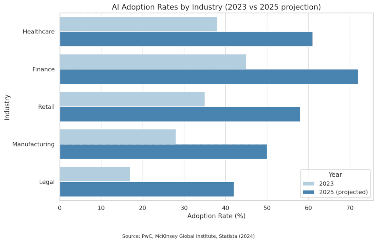 In 2025, AI adoption isn't confined to big tech or digital-first start-ups. According to PwC and the McKinsey Global Institute, AI integration is rising rapidly across nearly every major sector.