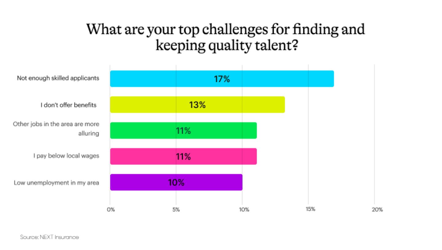 In our research, the main reason small business owners cite for the challenges in hiring is the lack of skilled applicants (17%).