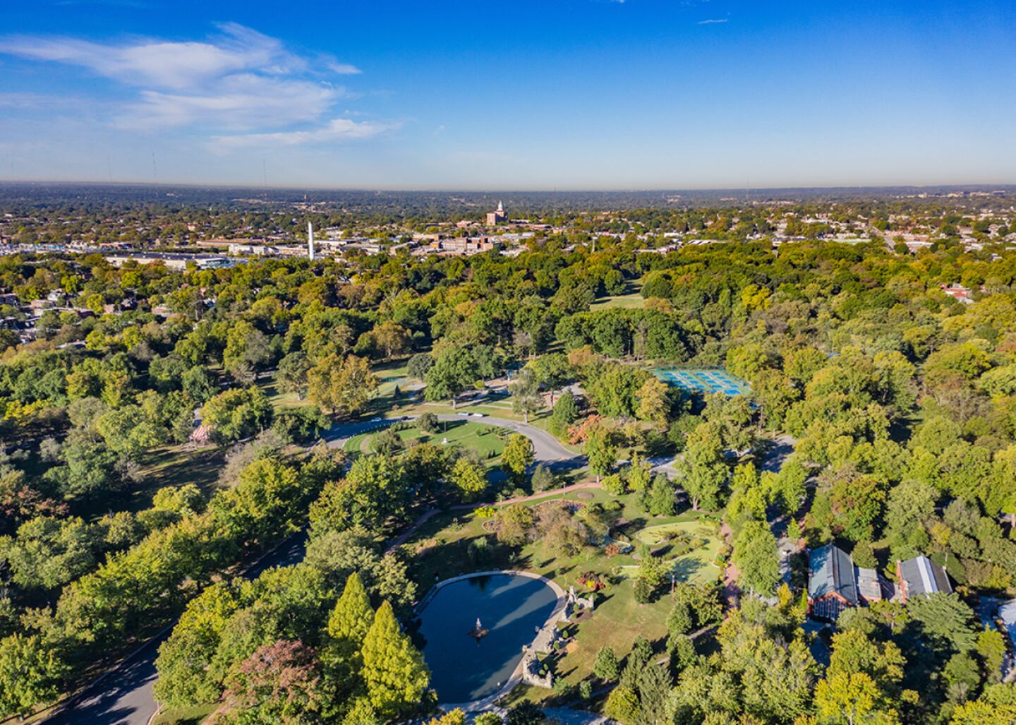 Its slogan is "in the center of it all," and with good reason—for wagon trains heading west in the 1800s, Olivette was the halfway point between the Mississippi River's Port of St. Louis and the Missouri River's Howell's Landing. Olivette was created in 1930 by combining four communities. Today, it offers 100 acres of parkland and open green spaces, with plenty of trails for those interested in outdoor recreation. Its elevation of 700 feet also makes it one of the highest communities in St. Louis County.