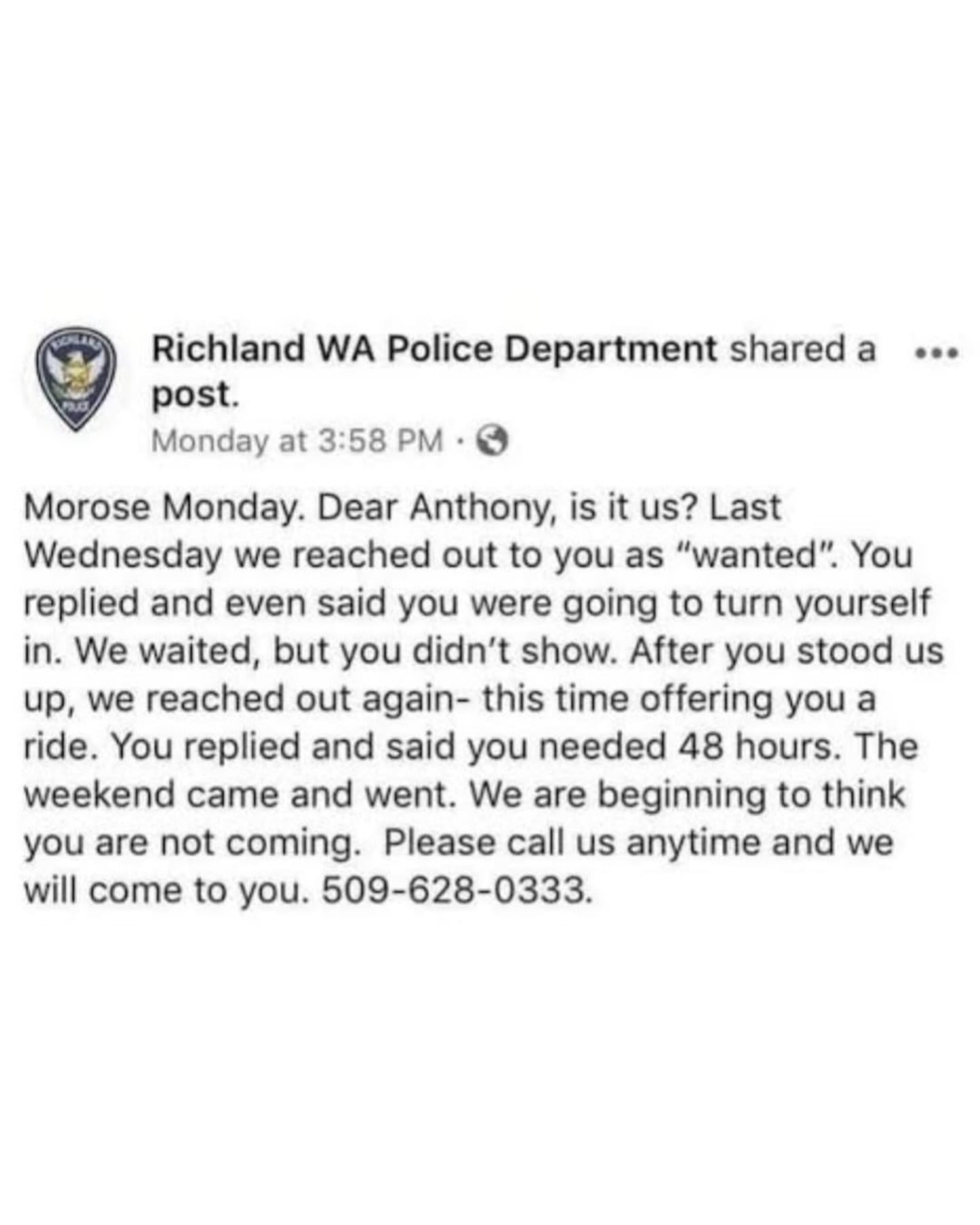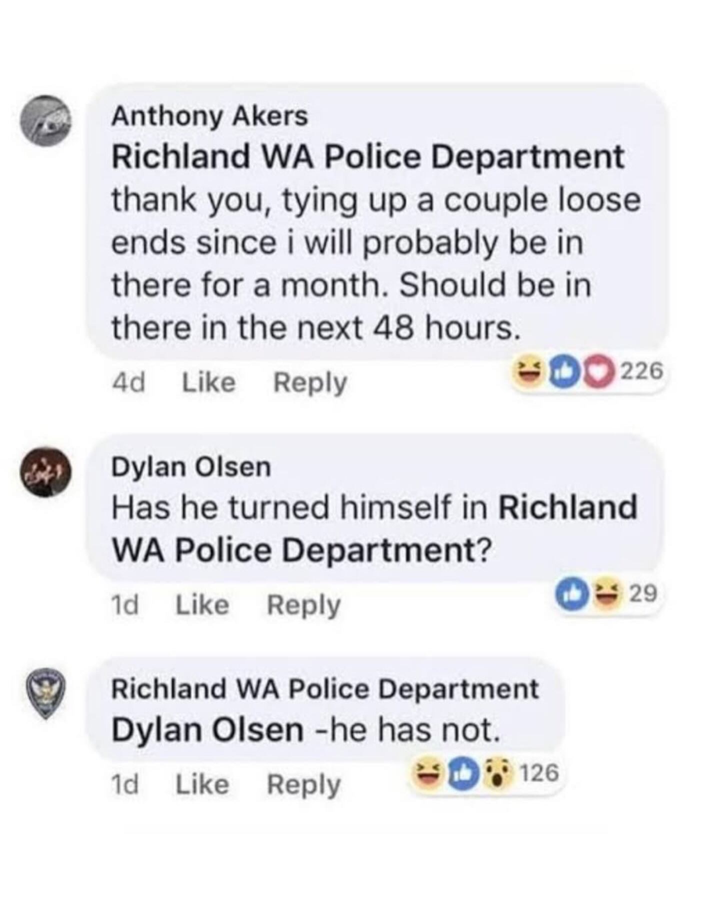 Anthony Akers Viral Facebook Thread (Facebook, Anthony Akers, Richland Washington PD)