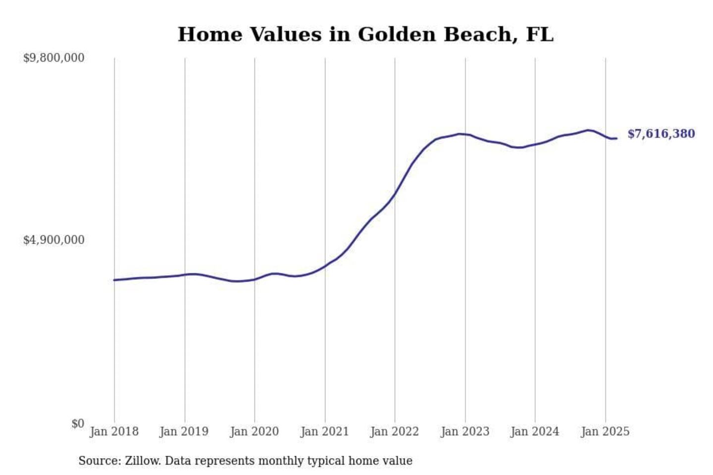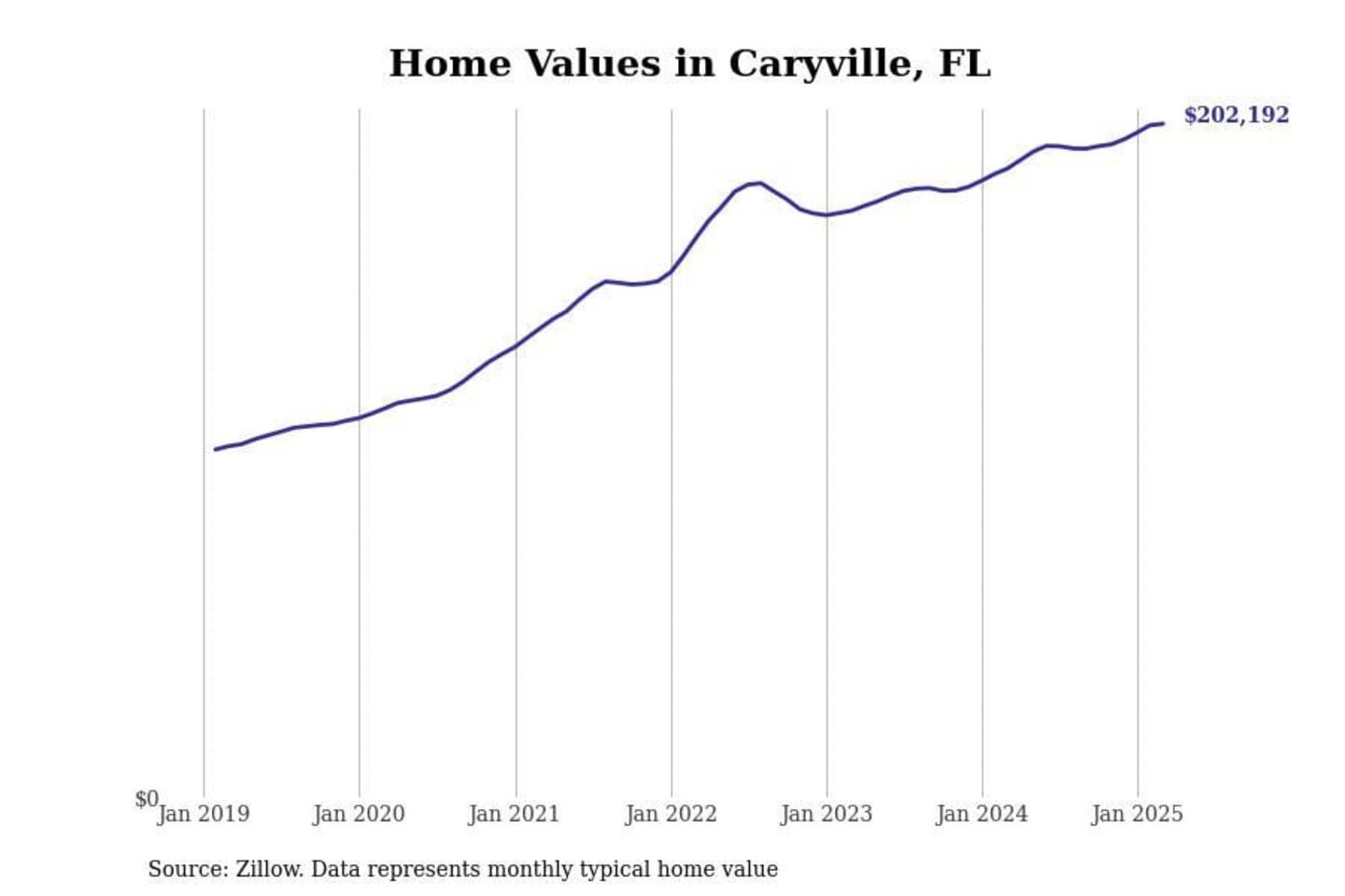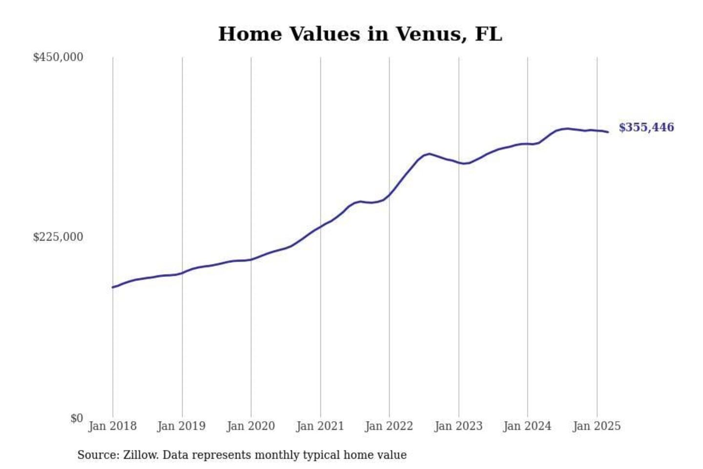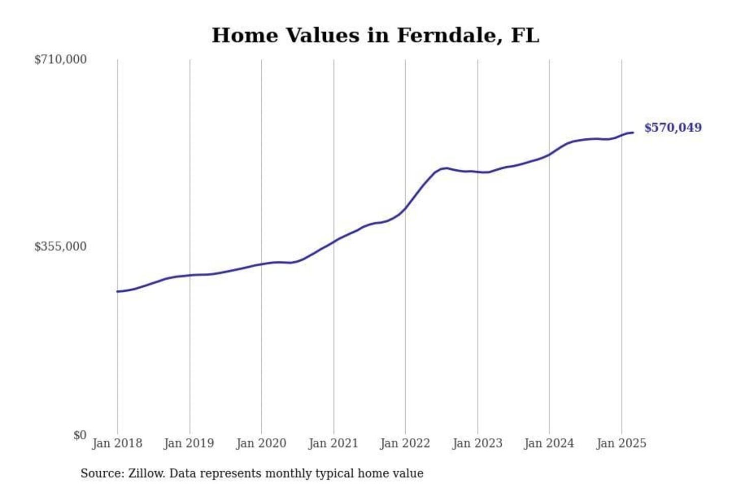 Stacker compiled a list of cities with the fastest-growing home prices in Florida using data from Zillow. Cities are ranked by the dollar change in the Zillow Home Values Index for all homes from the 12 months ending March 2025. The charts in this story were created automatically using Matplotlib. Data was available for 50 cities and towns in Florida.