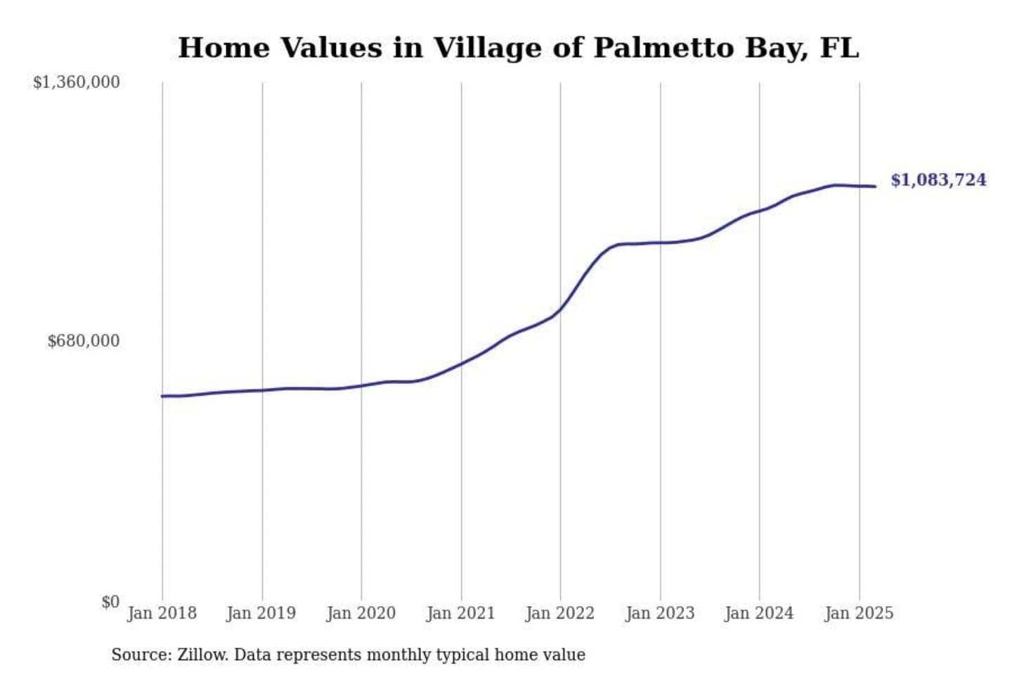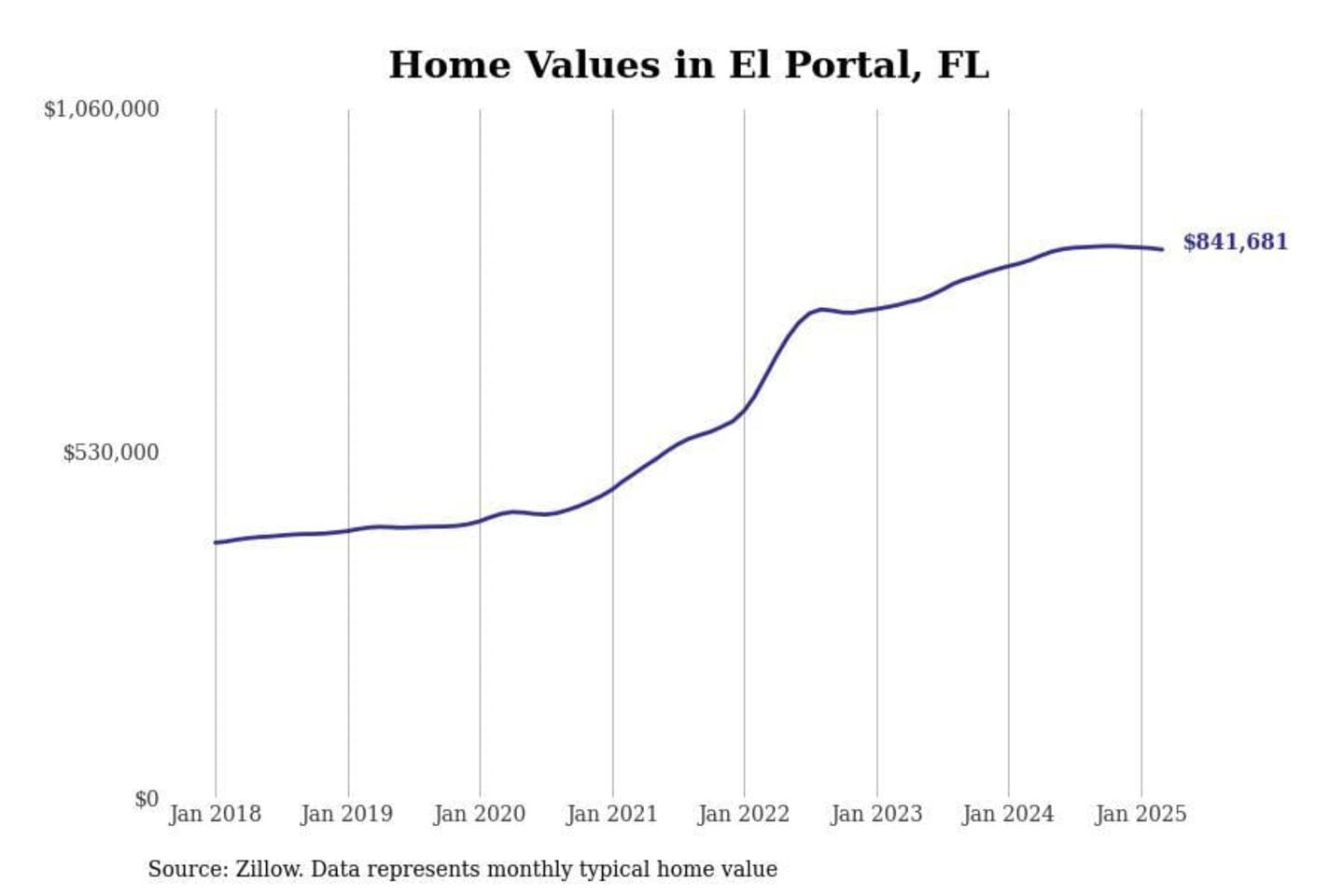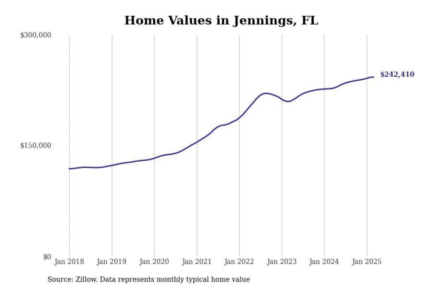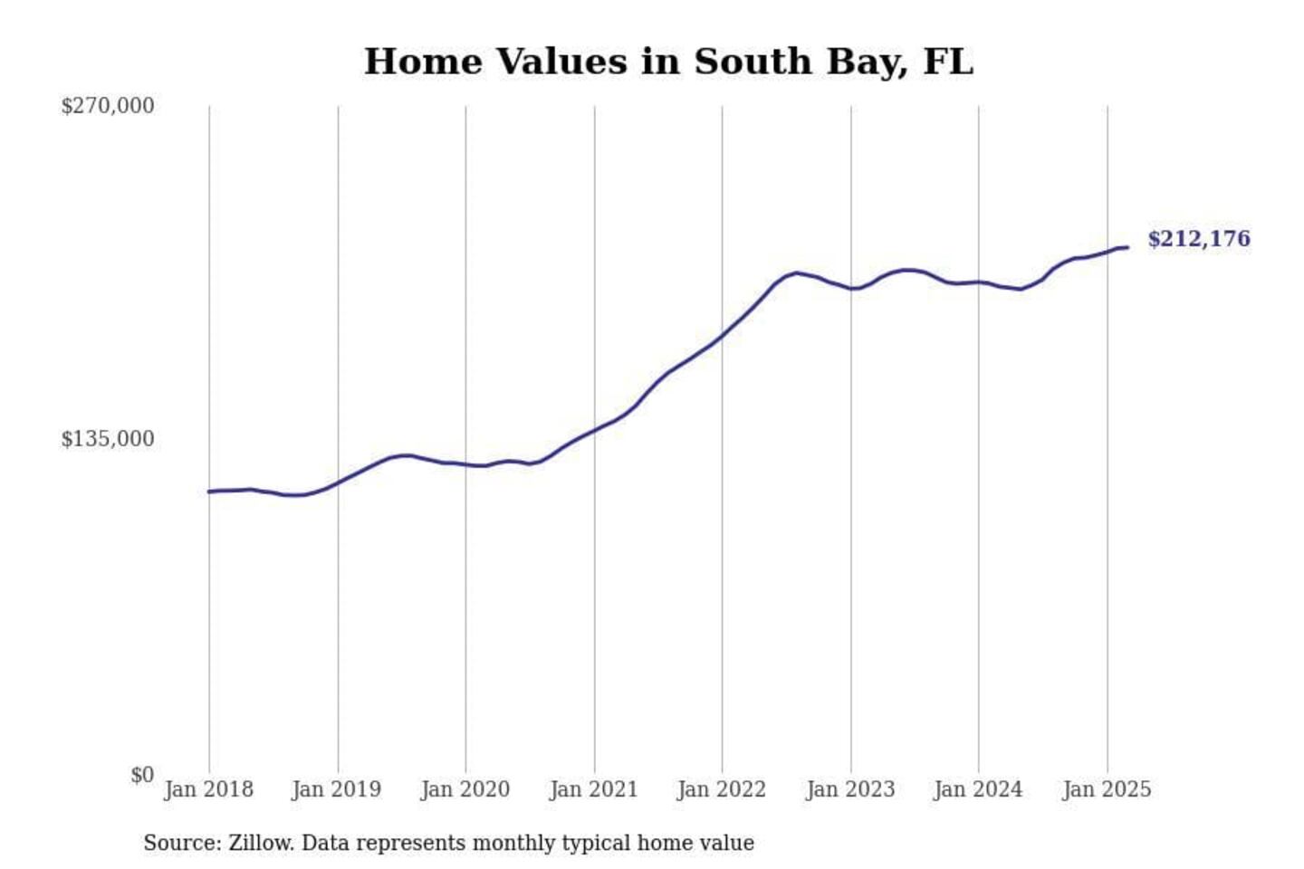 Stacker compiled a list of cities with the fastest-growing home prices in Florida using data from Zillow. Cities are ranked by the dollar change in the Zillow Home Values Index for all homes from the 12 months ending March 2025. The charts in this story were created automatically using Matplotlib. Data was available for 50 cities and towns in Florida.