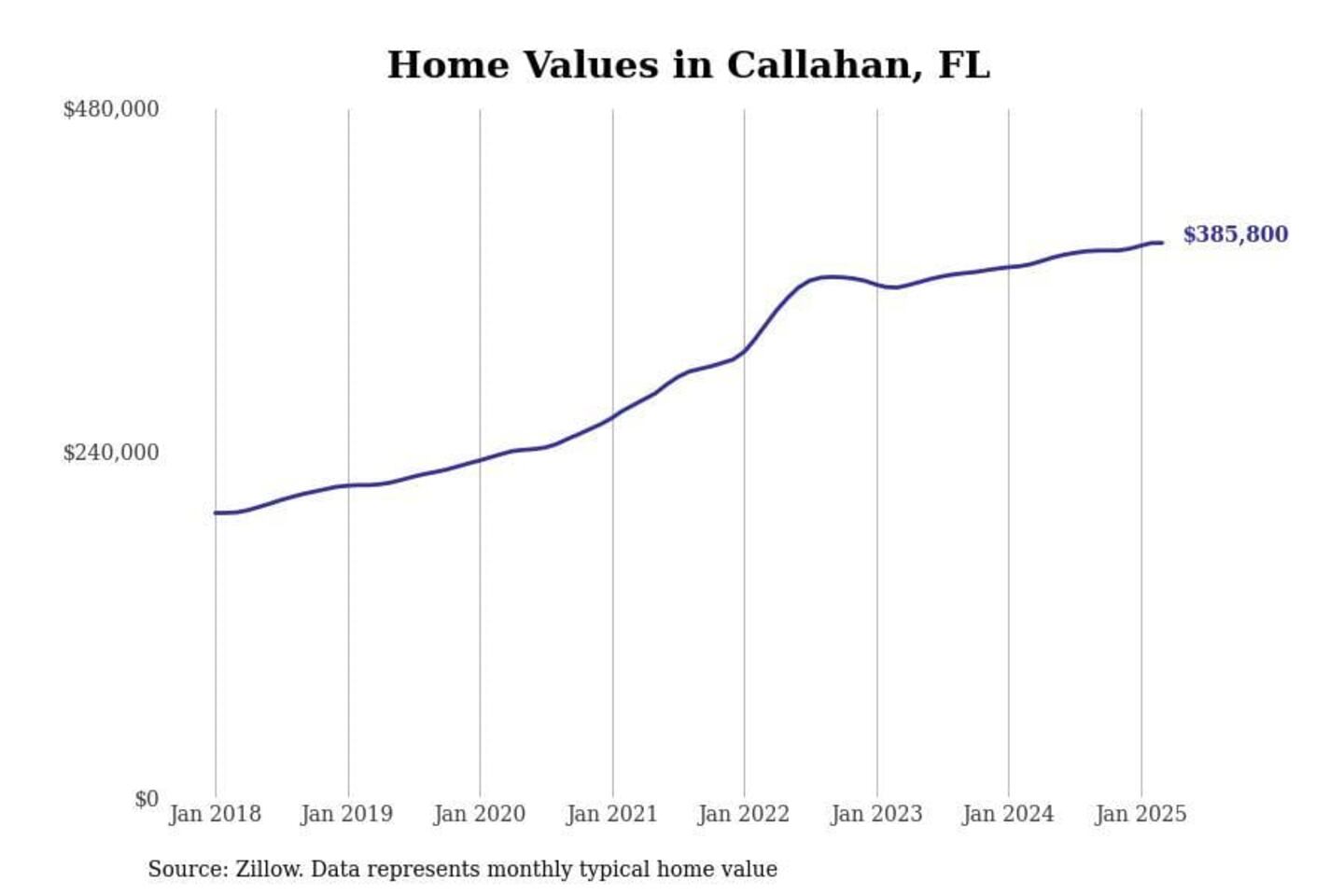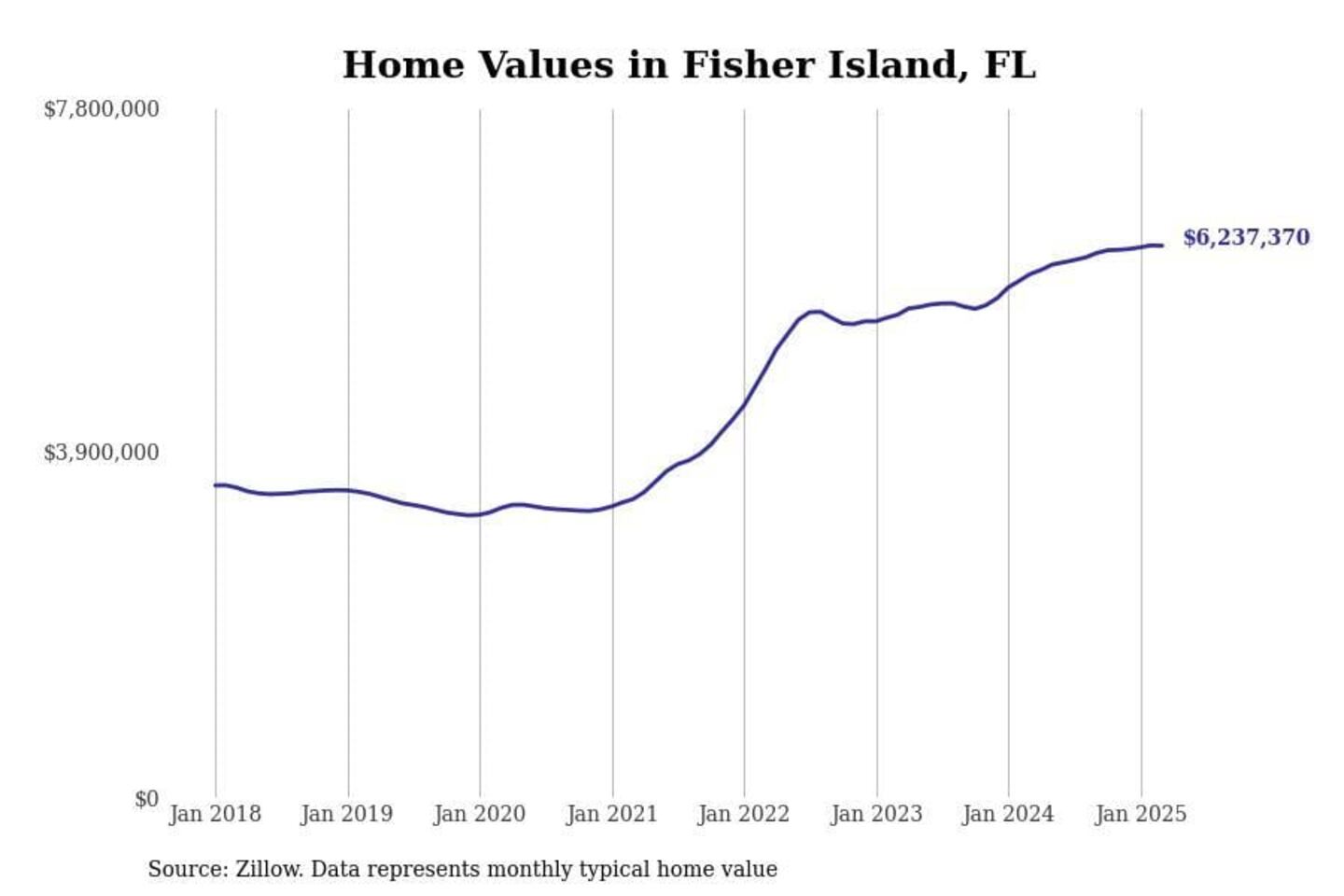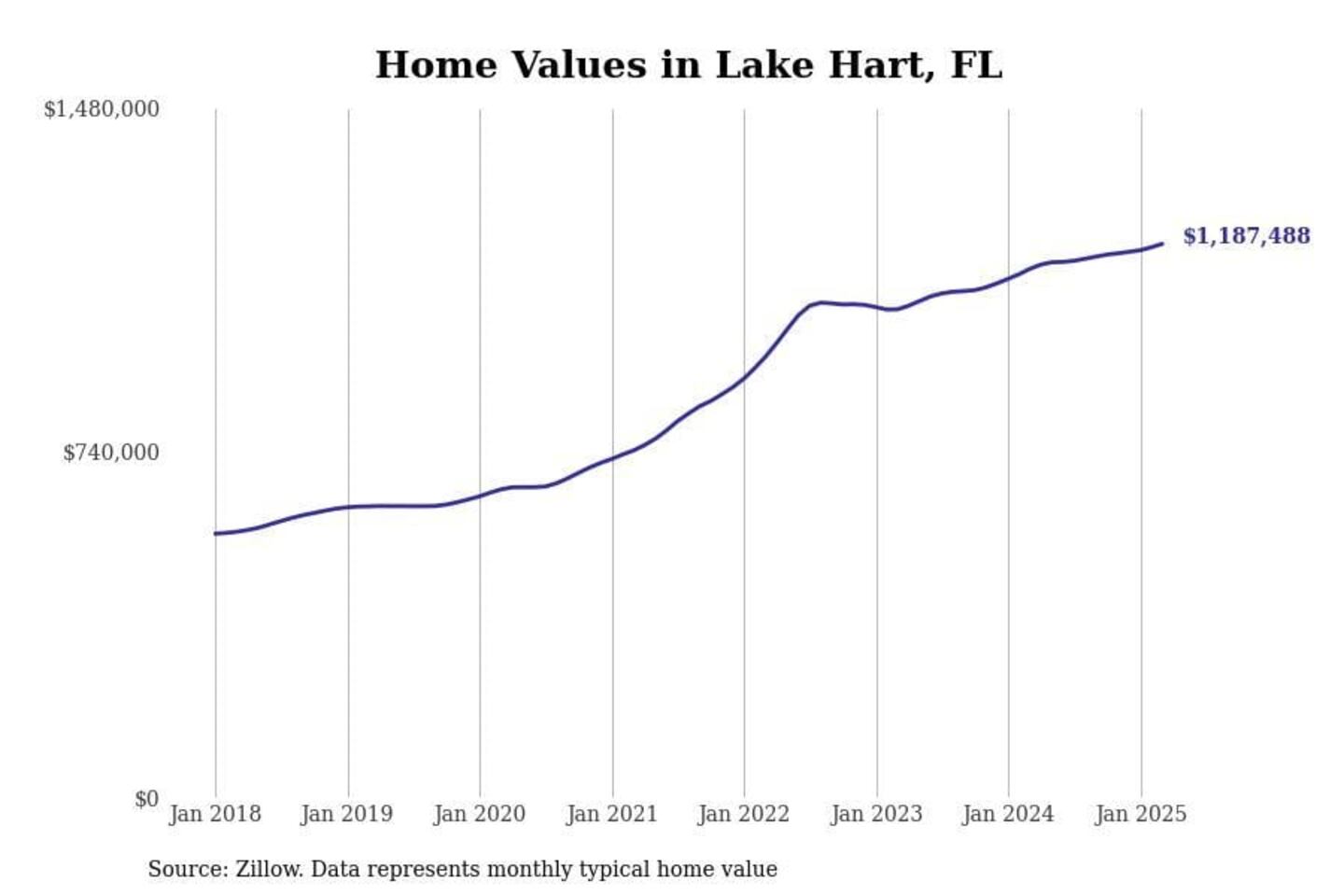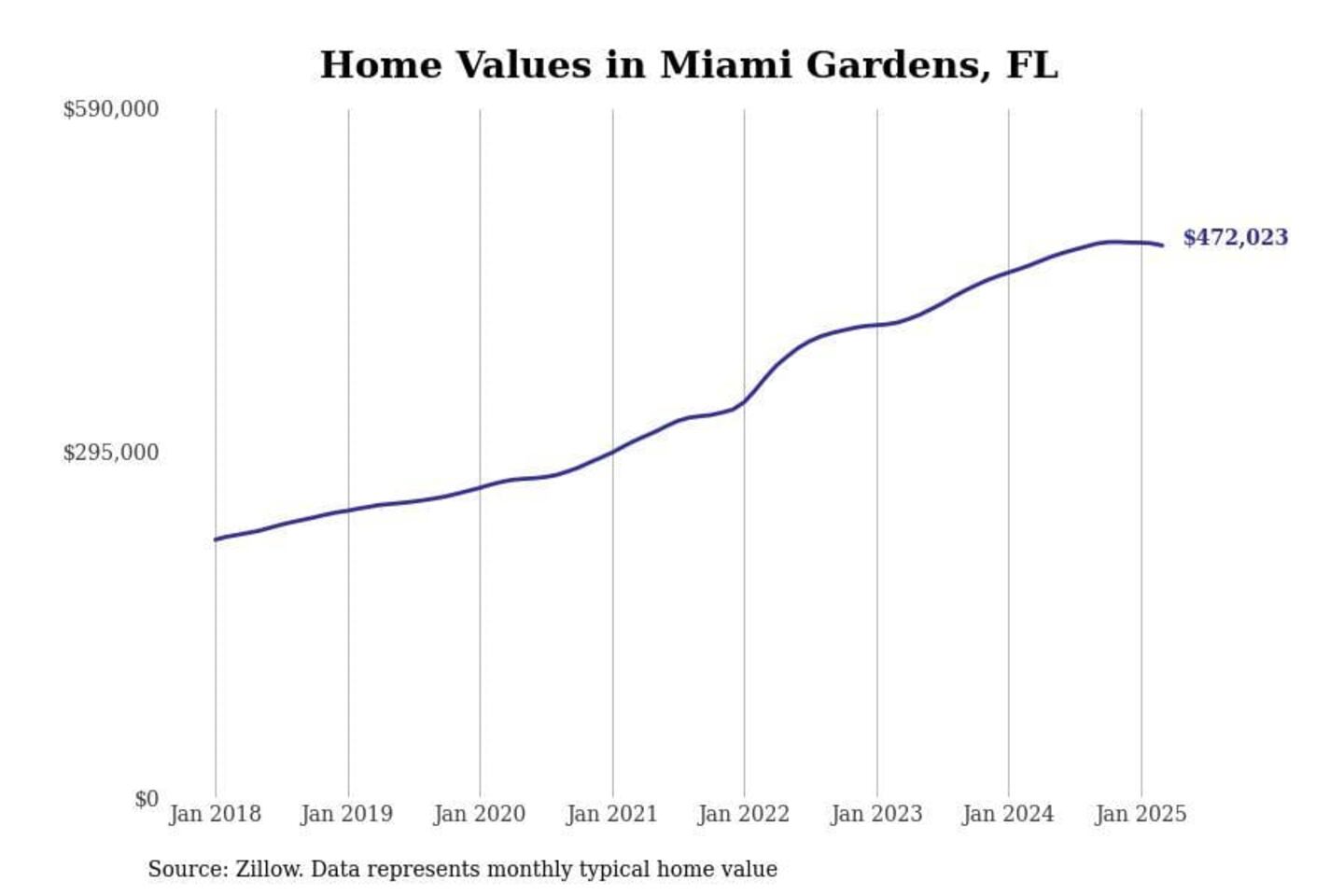 Stacker compiled a list of cities with the fastest-growing home prices in Florida using data from Zillow. Cities are ranked by the dollar change in the Zillow Home Values Index for all homes from the 12 months ending March 2025. The charts in this story were created automatically using Matplotlib. Data was available for 50 cities and towns in Florida.