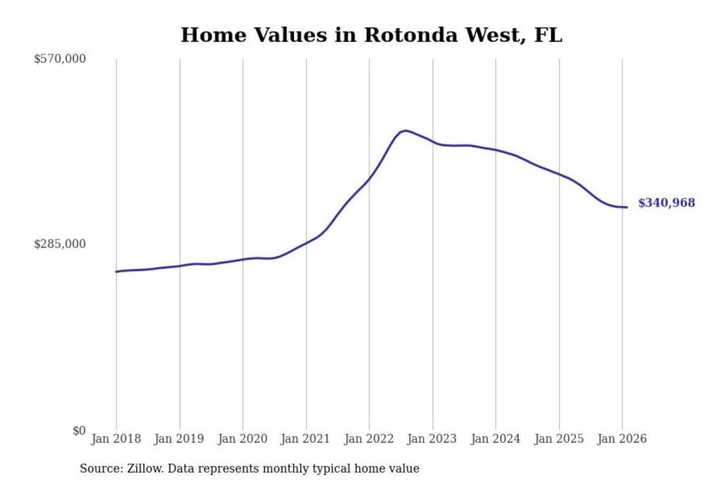 Stacker compiled a list of cities with the most expensive homes in the Punta Gorda, FL metro area using data from Zillow. Charts show the monthly typical home value since January 2018.