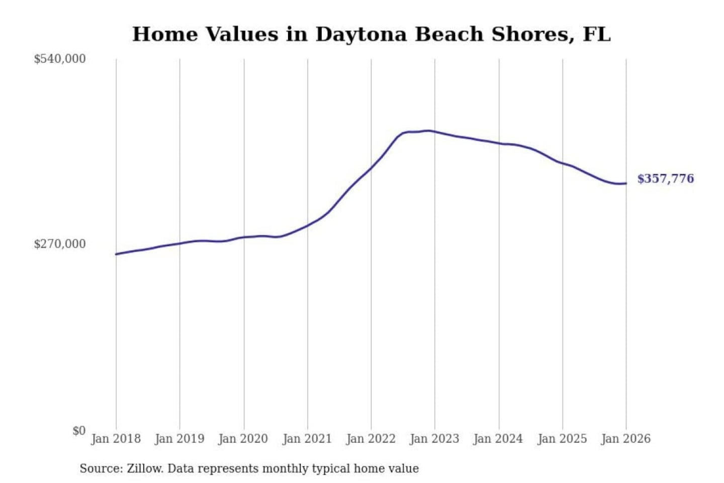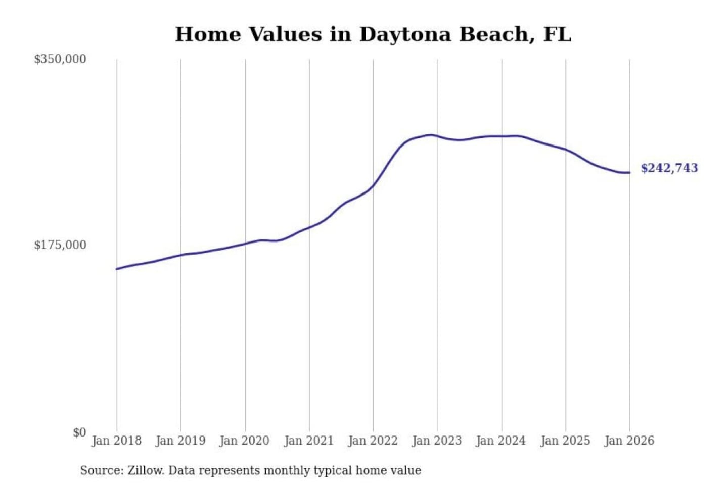 Stacker compiled a list of cities with the most expensive homes in the Deltona-Daytona Beach-Ormond Beach, FL metro area using data from Zillow. Charts show the monthly typical home value since January 2018.