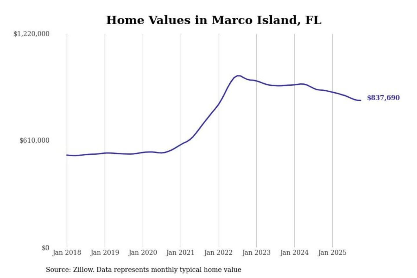 Stacker compiled a list of cities with the most expensive homes in the Naples metro area using data from Zillow. Charts show the monthly typical home value since January 2018. All 6 cities and towns with data available were included in the list.