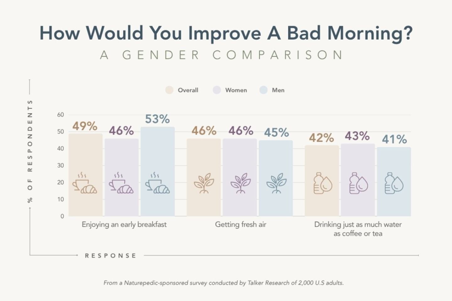 Regardless of gender, the top three ways to improve a morning were the same: