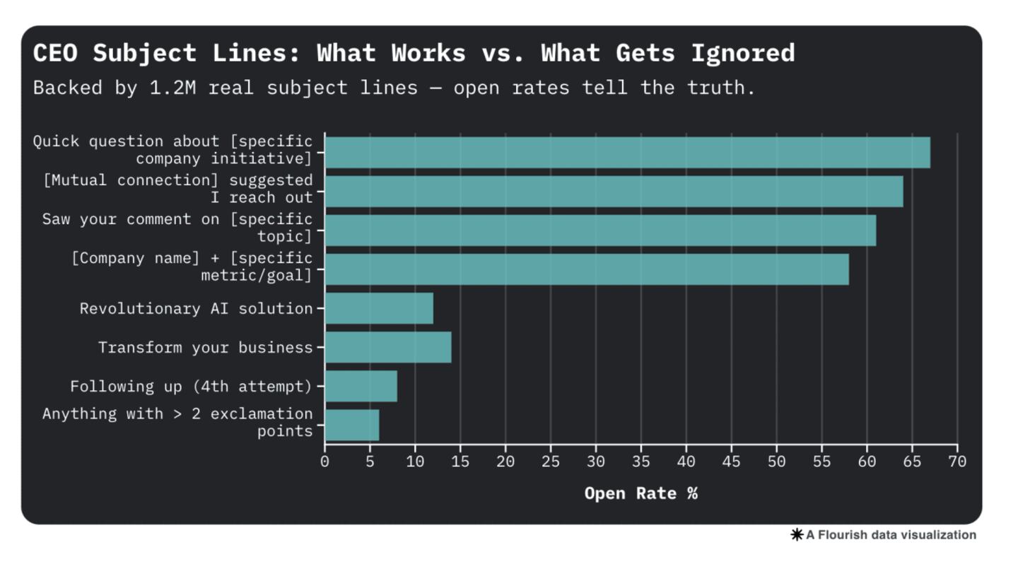 But here's the kicker — personalization only works if it's relevant. Mentioning their alma mater? Minimal impact. Referencing their recent acquisition or quarterly results? That's when CEOs lean in.
