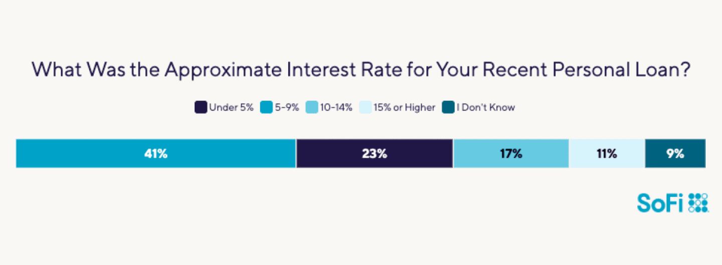 More than four out of every 10 borrowers paid a rate between 5% and 9% on their loans. Almost one-quarter of respondents reported interest rates below 5%, while less than half that number are paying 15% or more.
